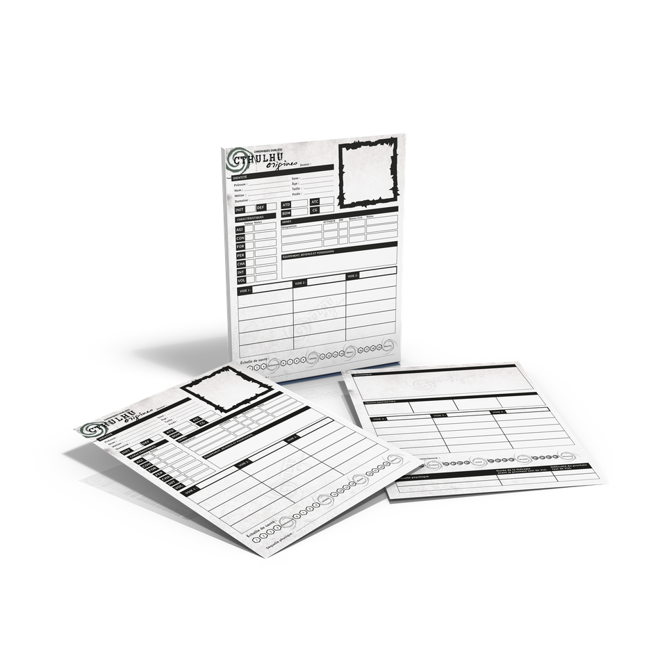 Cthulhu Origines - Dossiers de personnage + fiches de personnage + fiches de personnages prétirés (accessoire)
