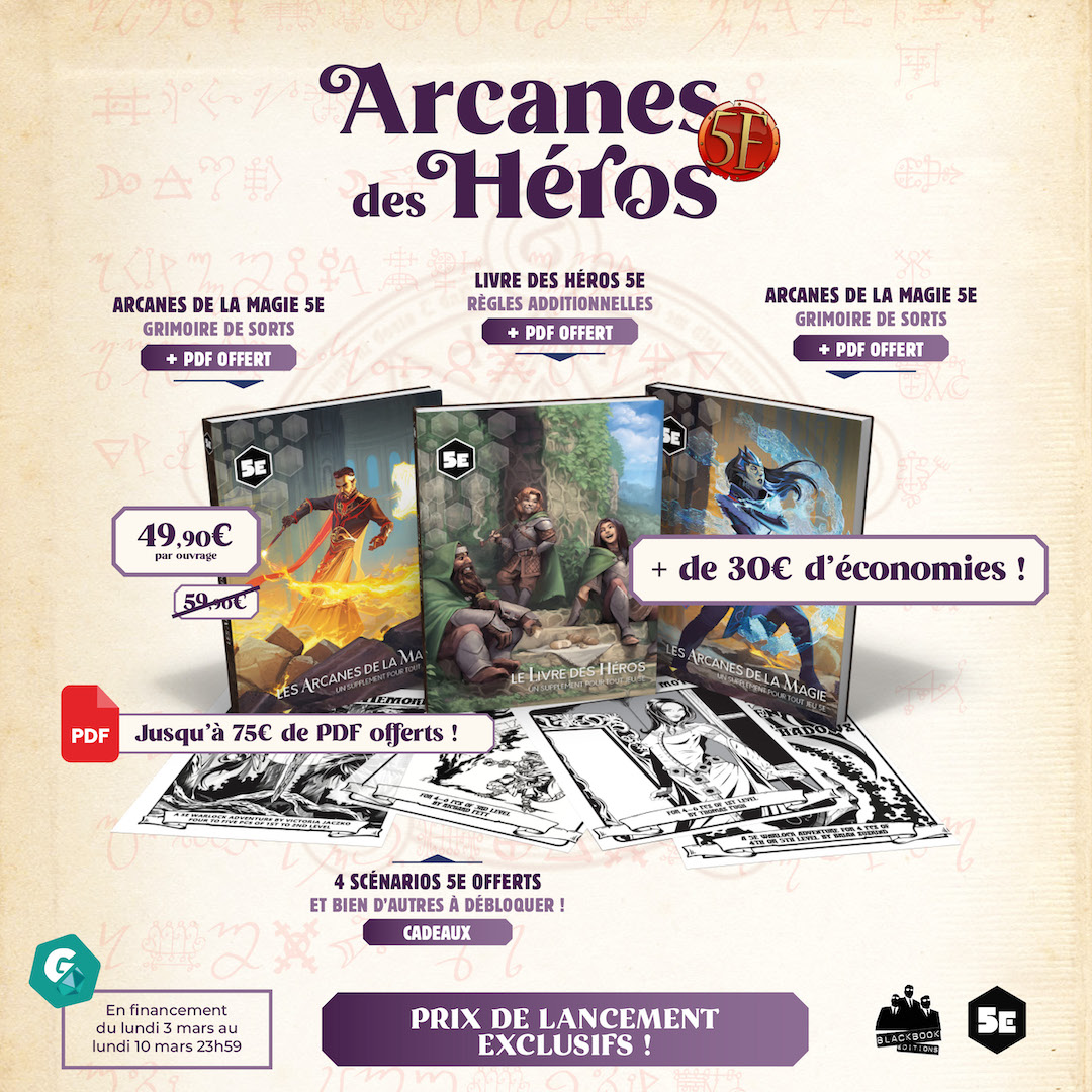 C'est votre dernière chance pour précommander les suppléments 5E / Rôle'n Play : la précommande Arcanes des Héros sera clôturée CE SOIR à 23h59 !
