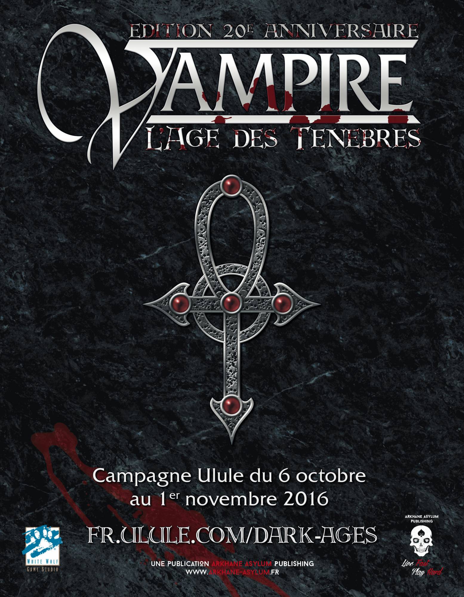 Après Vampire 20e anniversaire chez Arkhane Asylum vendu directement en boutiques, Vampire Le Requiem chez Agate éditions financé sur Ulule (dont la sortie est prévue d'ici la fin de l'année !), voici Vampire L'Âge des Ténèbres 20e anniversaire, de nouveau chez Arkhane Asylum, mais financé cette fois-ci sur Ulule !