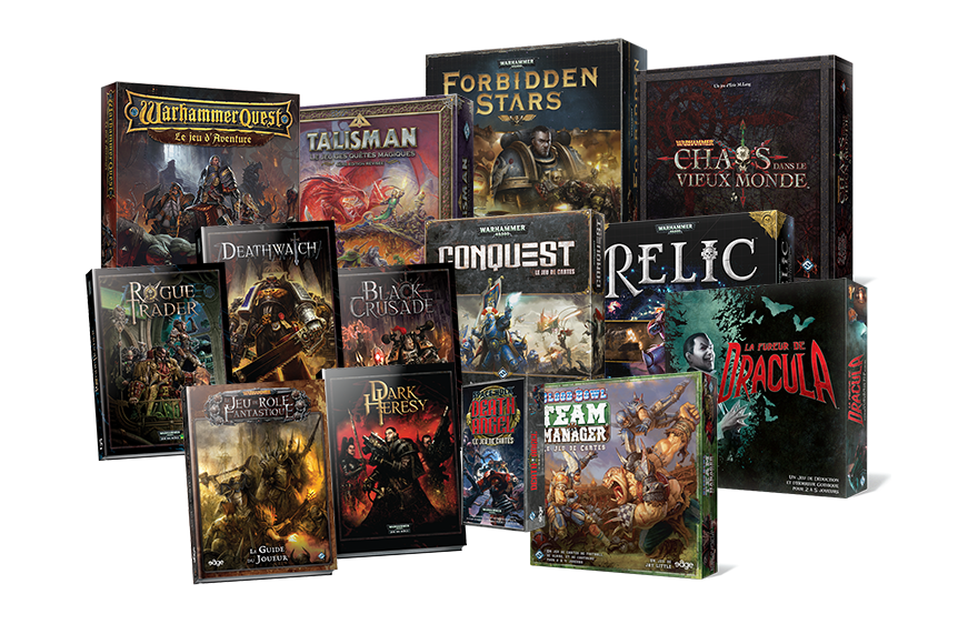 Depuis 2008, Edge nous régale des traductions des jeux FFG sous licence Games Workshop. Dark Heresy et ses rejetons (Rogue Trader, Deathwatch ou Dark Crusade) ont permis aux rôlistes d'explorer (enfin !) les confins de l'univers de Warhammer 40K, tandis que la nouvelle édition de Warhammer Fantasy, à défaut d'avoir soulevé les foules, a apporté un vent neuf dans le game design avec son mix jeu de plateau/jeu de rôle (la nouvelle édition de Star Wars en a bénéficié au premier chef).