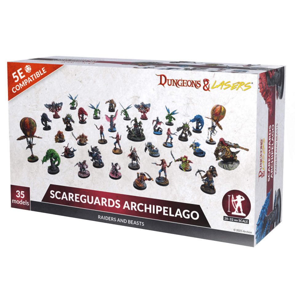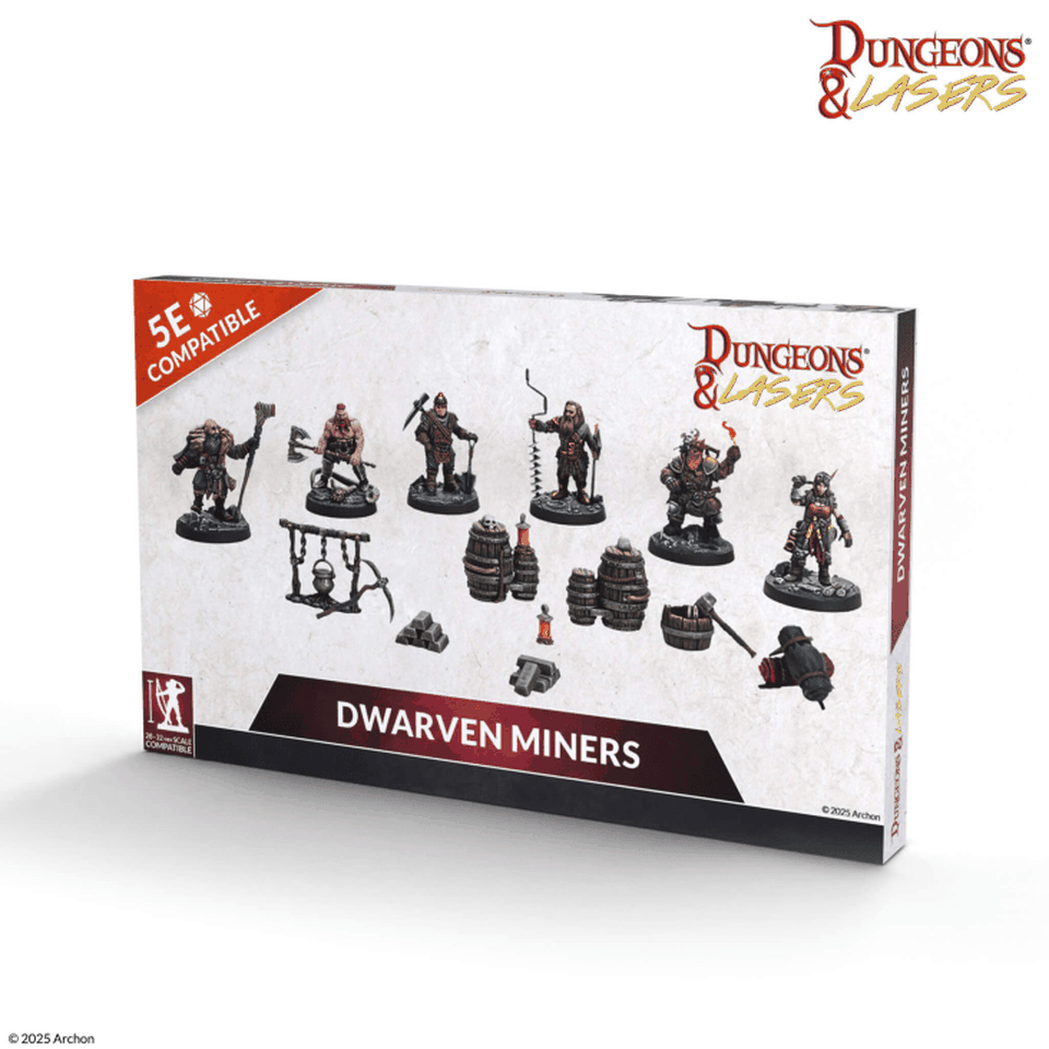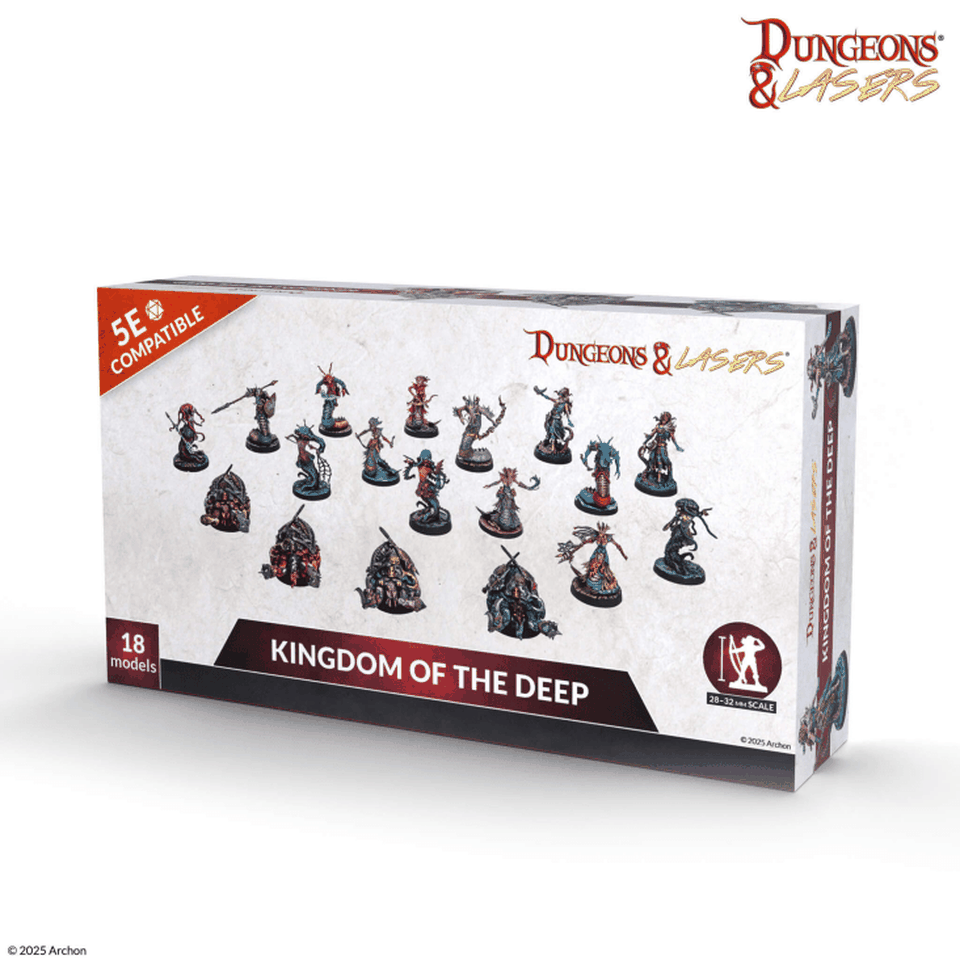 - Envoyez vos joueurs parcourir les mines naines du tout nouveau décor pré-peint Dungeons & Lasers, ils pourront y rencontrer des mineurs ou affronter le terrible Bal'Or ; et si vous êtes plus d'humeur aquatique, vous trouverez les adversaires adéquats dans les boites Kingdom of the Deep, Scareguards Archipelago et Anara the Undying Queen.