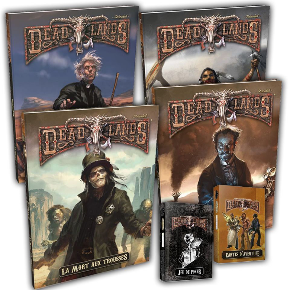 Ce pack livre de base & campagnes rassemble pour une centaine d'euros 11 produits Deadlands dont 4 mythiques campagnes Deadlands Reloaded, des accessoires, et le livre de base de la gamme ainsi que des gazettes (épuisés en verison papier) en version numérique !
