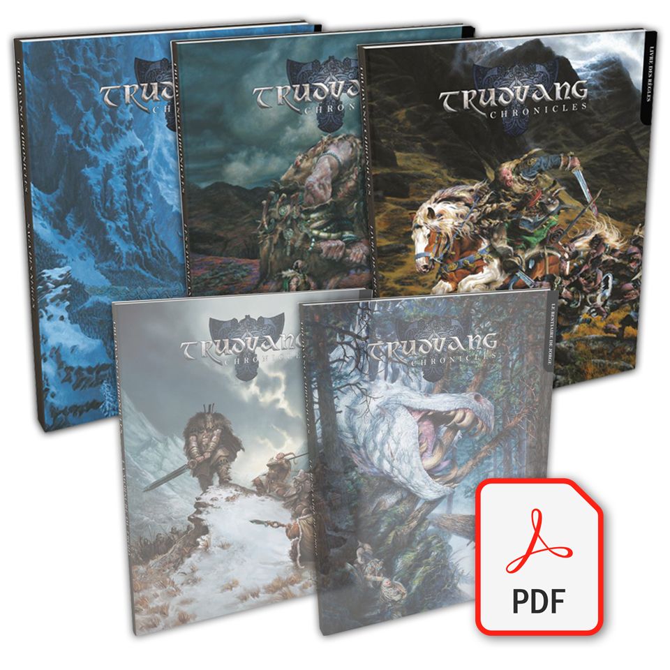 - Trudvang - Livre de règles : les règles de base permettant au maître de jeu de mener les parties et de créer des aventures et des campagnes dans le monde de Trudvang. Il inclut aussi tout le nécessaire pour que les joueurs puissent créer des personnages et jouer dans cet univers d’inspiration scandinave.