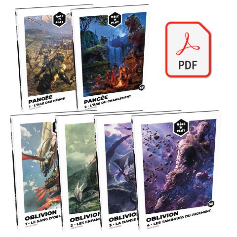 - Enfin, découvrez ou redécouvrez la mythique campagne Oblivion au travers du pack Oblivion + Pangée réunissant pour 50 euros seulement les 4 volumes de la campagne et les deux suppléments sur Pangée, décrit avant et après les événements d'Oblivion !