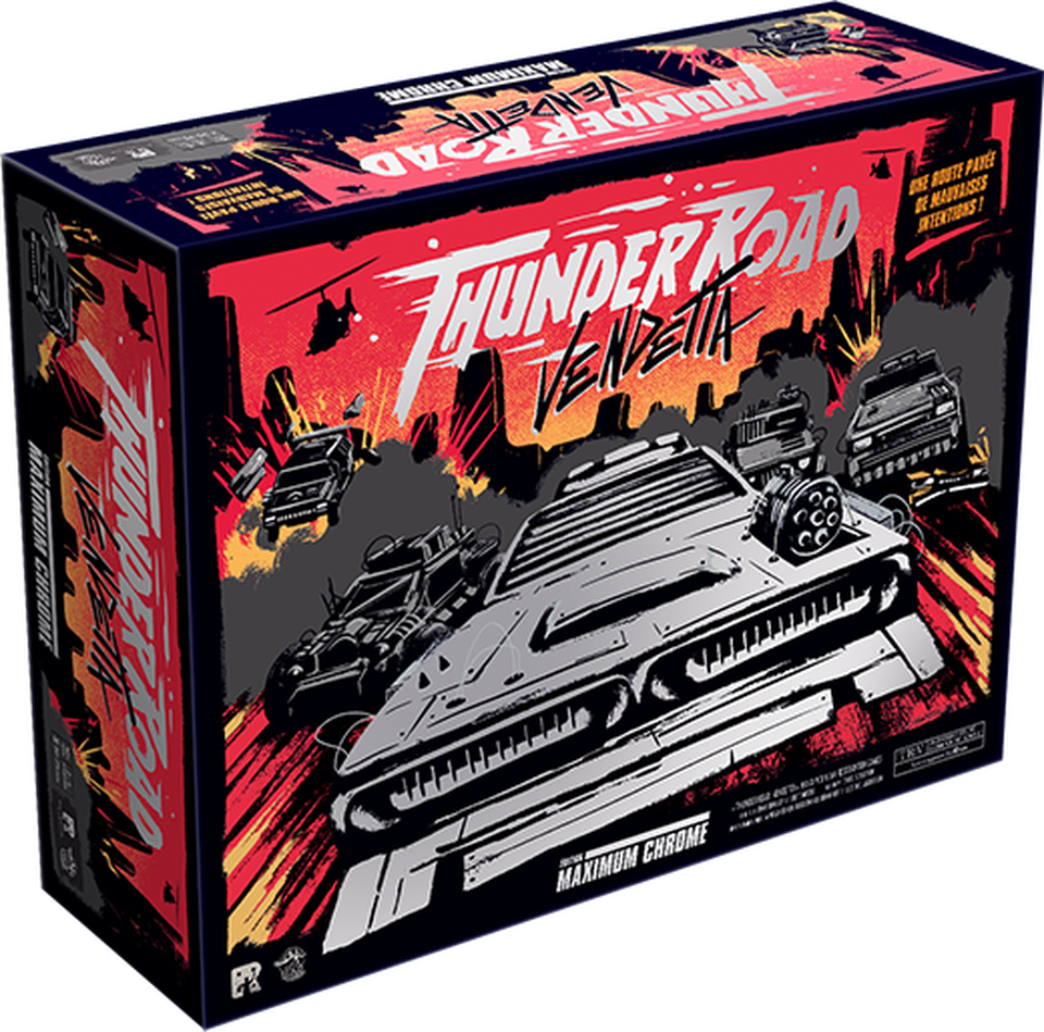 - Thunder Road Vendetta - Edition Maximum Chrome est la restauration survoltée du jeu classique de 1986 qui met la pagaille sur l’asphalte. Rassemblez votre équipe, lancez vos dés, faites la course avec vos voitures, tirez avec vos armes et essayez de ne pas vous faire démolir !