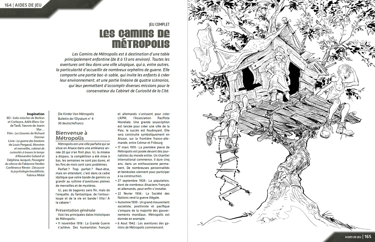 - Les Gamins de Métropolis, un jeu complet de 38 pages écrit par Martin Rodde, accompagné d’un article donnant des conseils pour jouer avec des enfants.