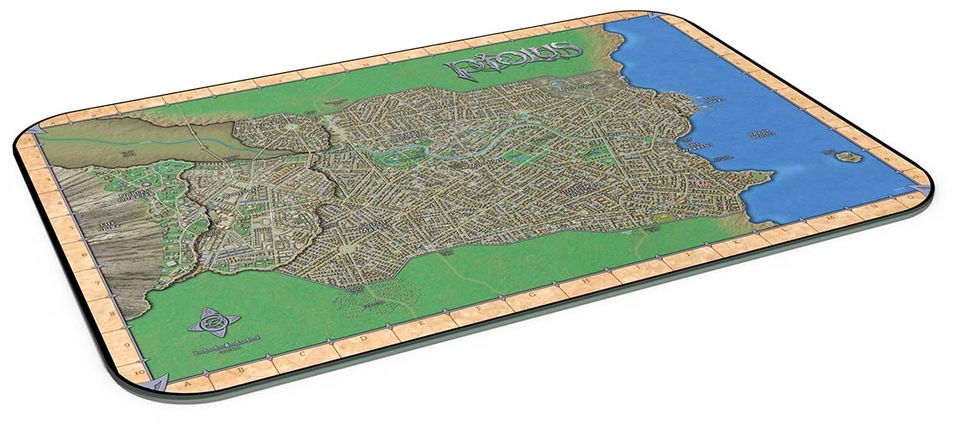 Le plan playmat carte de la ville de Ptolus est à -30% (30 euros de remise !) : préparez un bel espace, il mesure 1m30 par 90cm !
