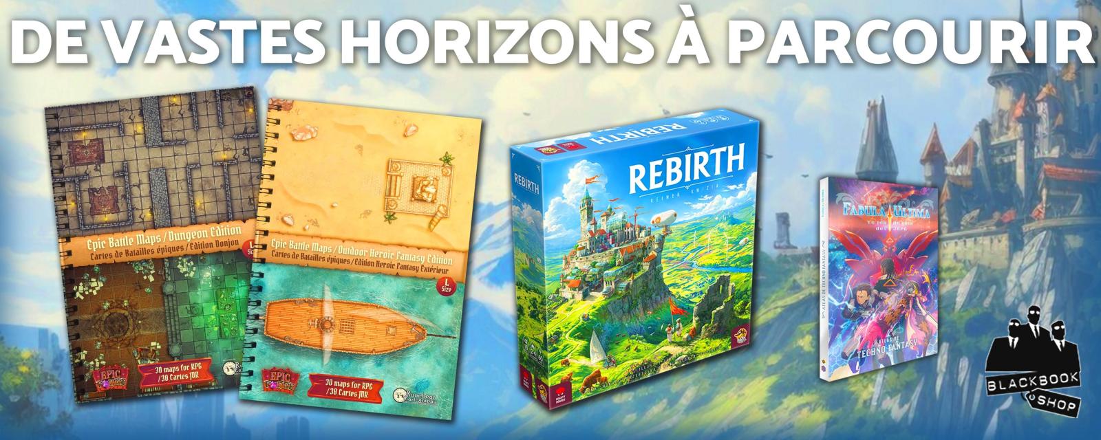 - Rebirth : imaginez un futur où la nature a repris ses droits. L'Écosse est en ruines, mais elle est verdoyante, luxuriante et prête à accueillir un nouveau départ. Votre mission ? Participer à ce renouveau. Pourquoi on aime Rebirth ? C'est un jeu de pose de tuiles signé par le célèbre Reiner Knizia, et on y retrouve tout ce qui fait son génie :