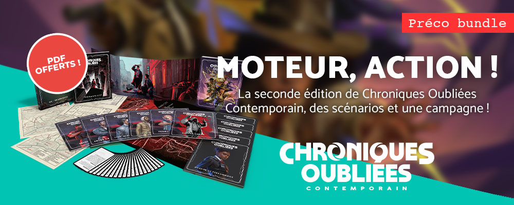 Tous les ouvrages et produits issus du lancement de la gamme Chroniques Oubliéess Contemporain, 2e édition sont désormais disponibles en Préco Bundle (PDF offert mis à dispo immédiatement) !