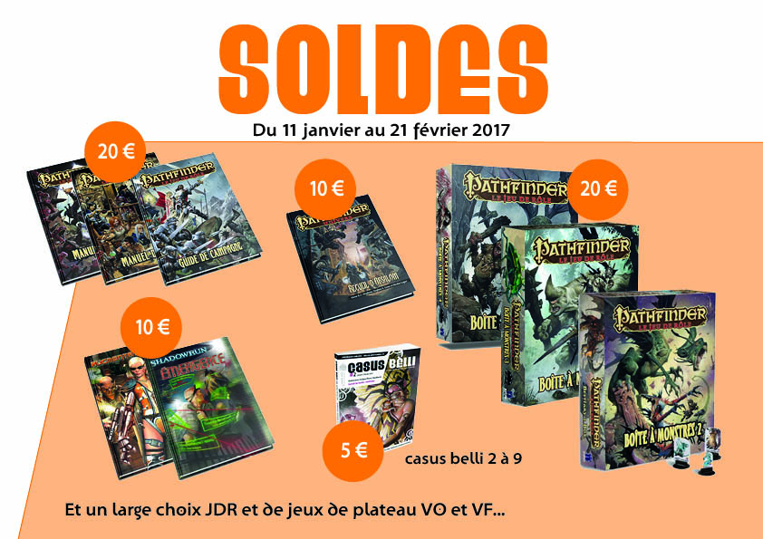 Les Boites à Monstres 2, 3, 4 et Codex Monstrueux et les Boites à PNJ 1 et 2 sont de retour sur la liste des soldes, ainsi que les ouvrages listés ci-dessous. Attention, pour des raisons de logistique, ces articles ne seront pas forcément expédiés dès lundi mais plus vraisemblablement dans le courant de la semaine prochaine. Merci de votre compréhension.
