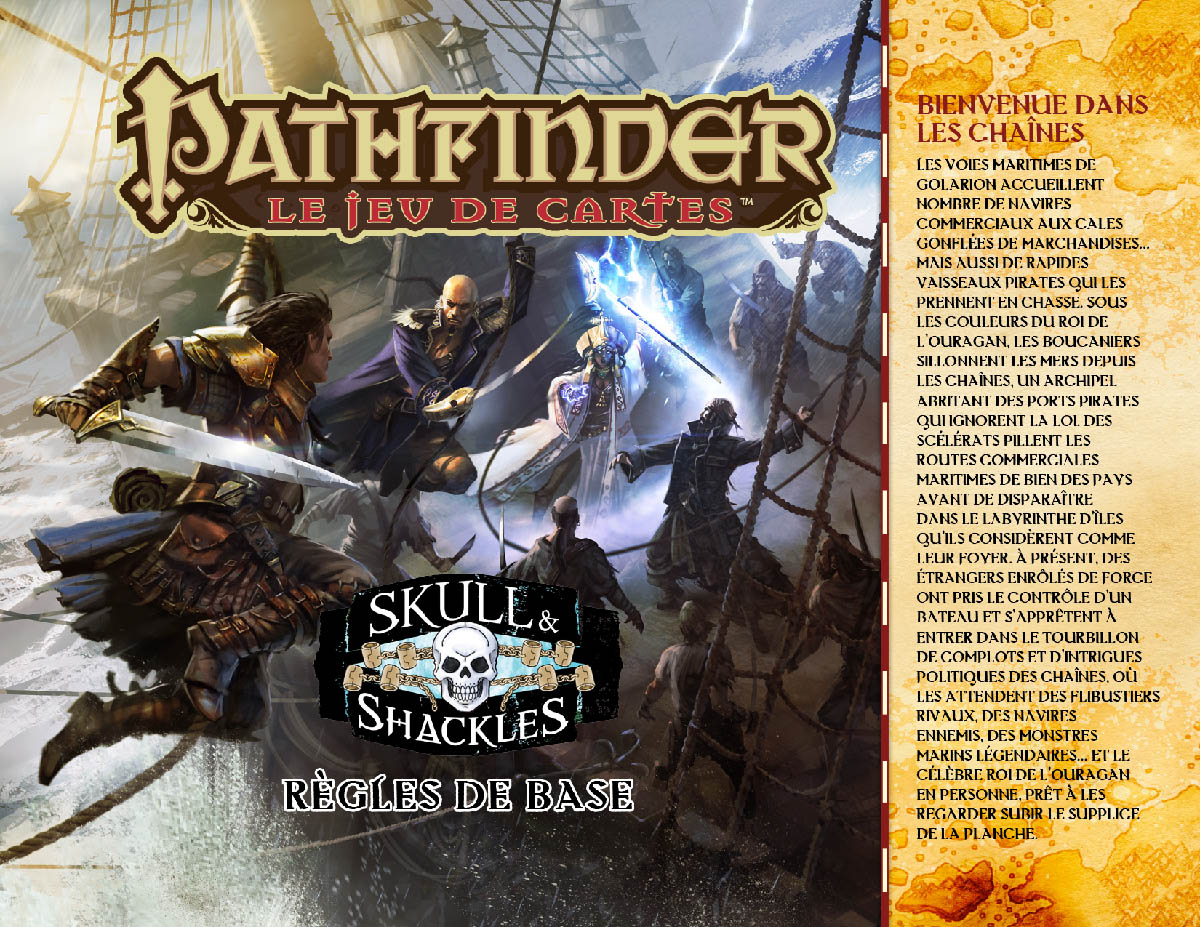 Avant de revenir plus en détail sur les nouveautés proposées dans les deux boîtes Skull & Shackles, que ce soit en terme de gameplay pur ou de scénarios, ou la Boîte des Decks de classes (qui propose 3 à 4 variantes de personnage pour chacune des classes suivantes : Barde, Ensorceleur, Guerrier, Magicien, Prêtre, Rôdeur et Roublard), nous vous proposons déjà de vous plonger dans le Livre des règles de Skull & Shackles et de découvrir les nouveautés de cette nouvelle campagne qui fera souffler un vent de piraterie sur votre table de jeu !