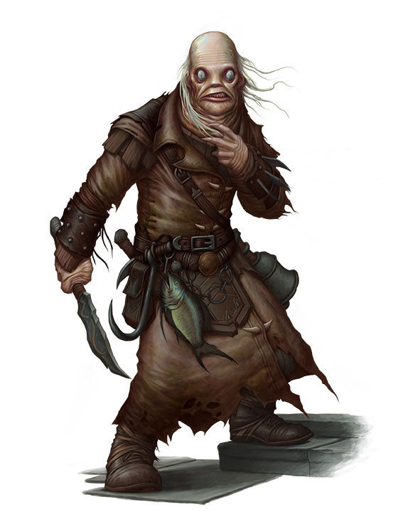 Notamment le fait de pouvoir créer des PNJ qui en valent la peine ou de jouer certaines races monstrueuses ! Ainsi, on retrouve dans les pages du Bestiaire 5 les hybrides profonds (vous savez, sur le port d'Innsmouth dans les célèbres écrits de Lovecraft), ainsi que les règles pour les créer. Oserez-vous jouer un hybride profond échappé d'une sombre communauté de l'Ustalav ?