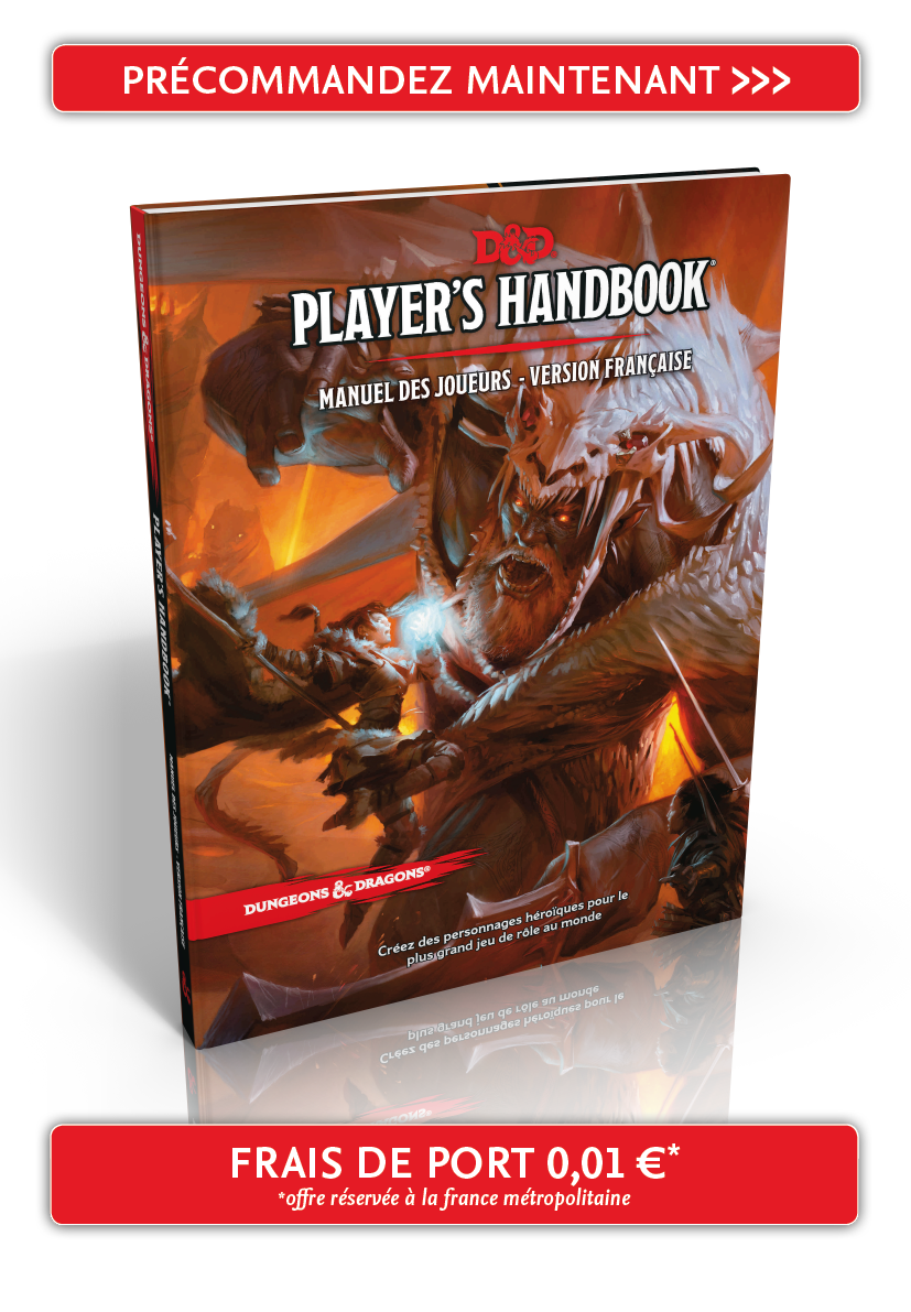 Nous vous informons que l'opération spéciale de frais de port à 0,01 € pour toute précommande du Player's Handbook ® (Manuel des joueurs version française) se terminera demain matin à 8h.