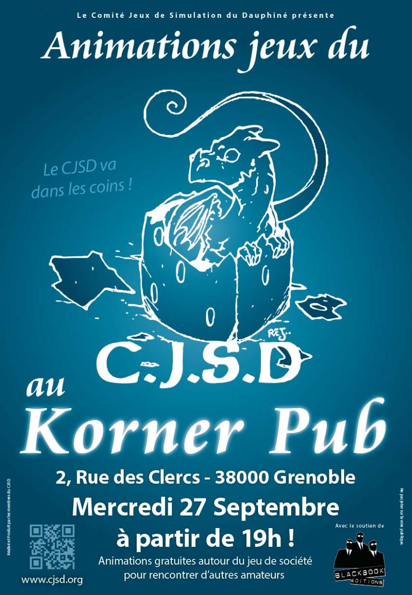 Ce mercredi 27 septembre à partir de 19h au Korner Pub de Grenoble, l'association le CJSD proposera des animations jeux de société gratuites.
