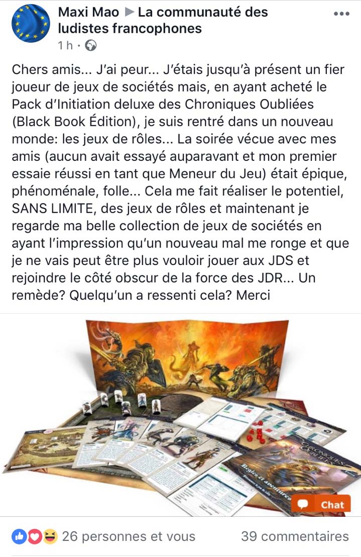 On en profite pour vous poster ce message vu sur facebook qui fait tellement plaisir et vous remettre l'interview de Laurent "Kegron" Bernasconi et Tête Brûlée au FIJ de Cannes à propos de la gamme CO Fantasy.