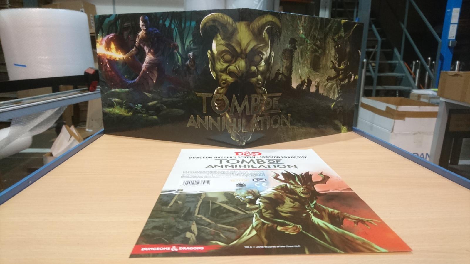 Le Gob a mal au dos cette semaine, trop de nouveautés pour sa hotte... Pas de doute, Noël approche ! Côté VF, les écrans Dungeons & Dragons 5 sont là ! L'Ecran du Maître du donjon D&D5 est d'ores et déjà disponible, quant à l'Ecran Tomb of Annihiliation - version française, il est disponible en précommande, et sera expédié à partir du 14 décembre, jour de la sortie en boutiques.