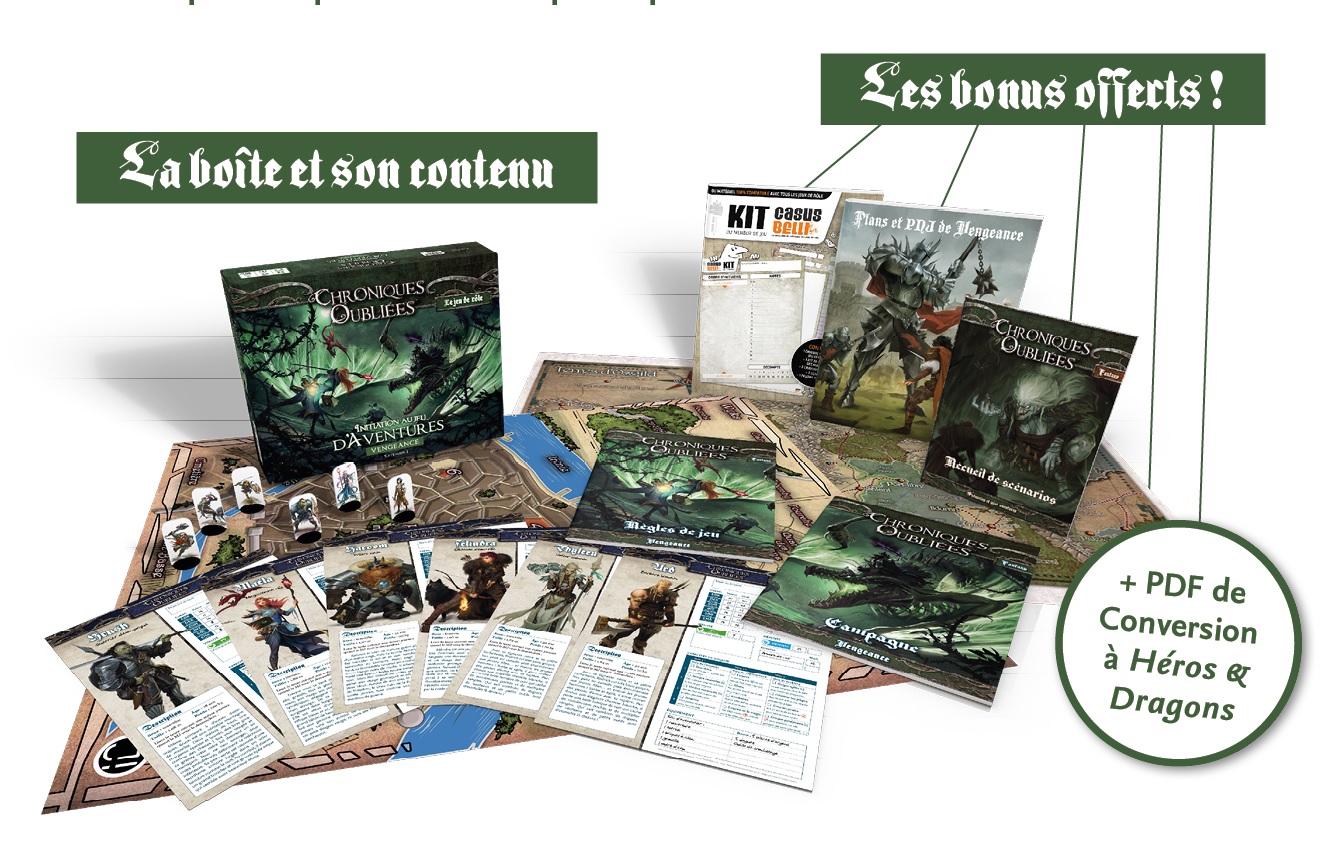 Nous attendons pour le début du printemps le nouveau tirage de la boîte Chroniques Oubliées : Fantasy - Initiation au jeu d’aventures, qui reste disponible dans sa version exclusive Ségur (en soldes jusqu'au 19 février).