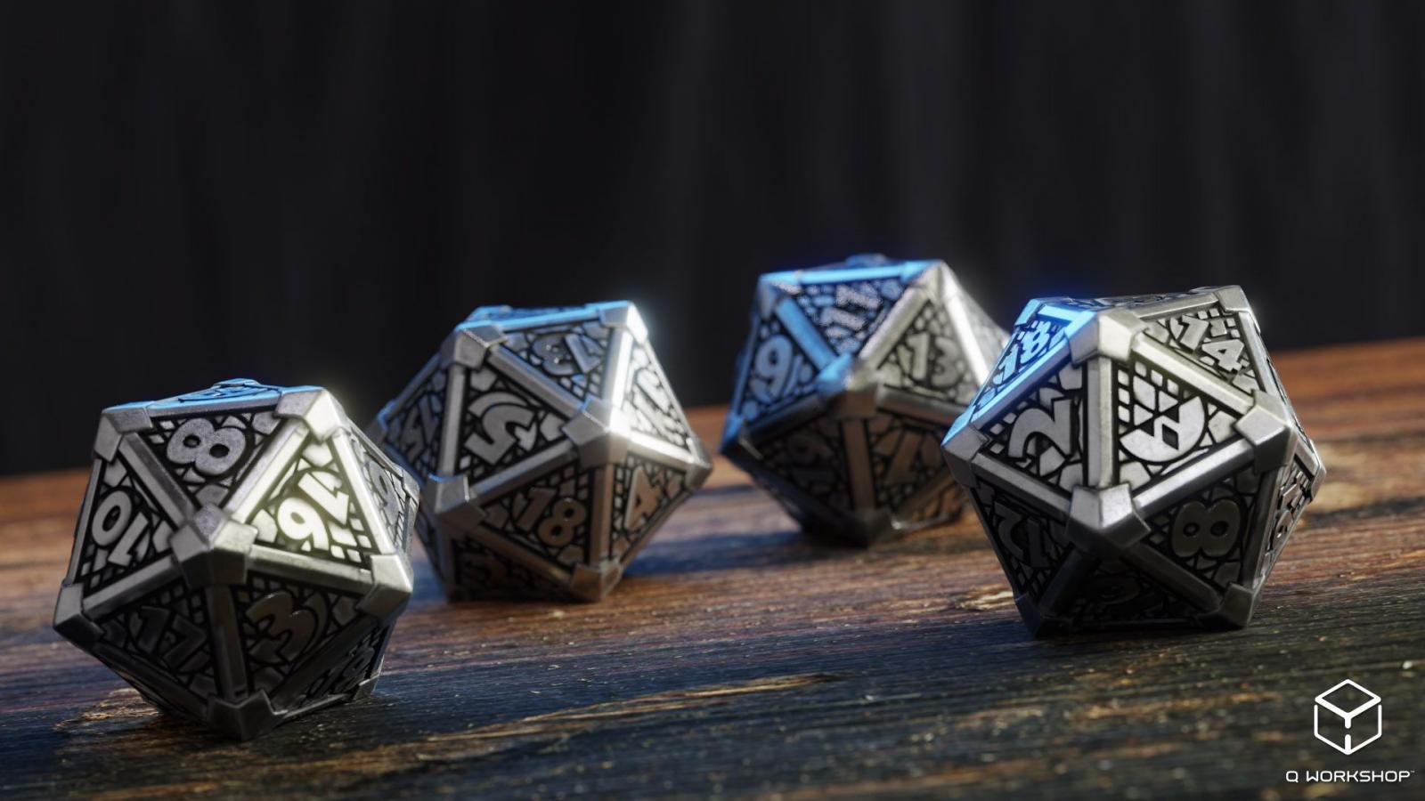 Dés Laelith en métal en cours de production chez Q-Worskshop, livraison attendue en février à l'entrepôt