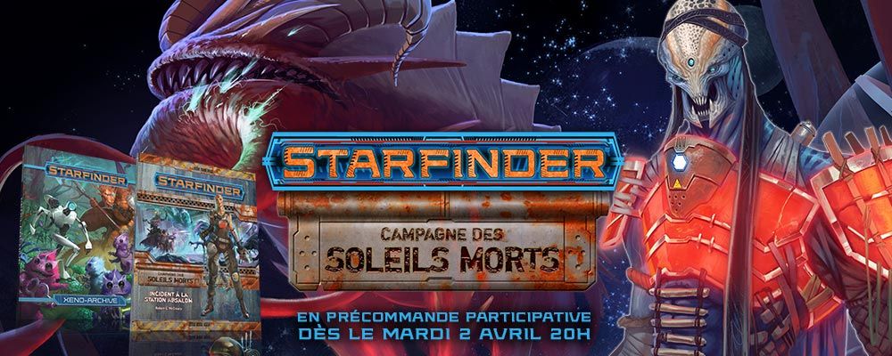 Mardi 2 avril, retrouvez l'équipe de Rôle 'N Play pour un live spécial : l'épisode one-shot Starfinder à l'occasion du lancement de la précommande participative des Soleils morts, la première campagne de ce jeu space-opera !