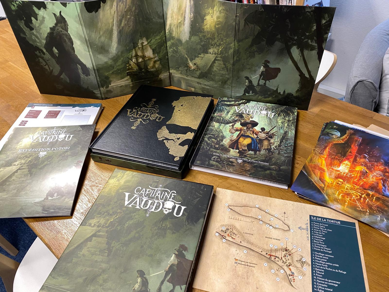 Fruit d'une campagne de précommande réussie menée tambour battant sur Game On Tabletop au mois de mai, le jeu des pirates et de la magie vaudou dans les Caraïbes, Capitaine Vaudou, est de retour à grand fracas : nous venons de recevoir les ouvrages, splendides, et d'attaquer hier les expéditions à destination des backers.