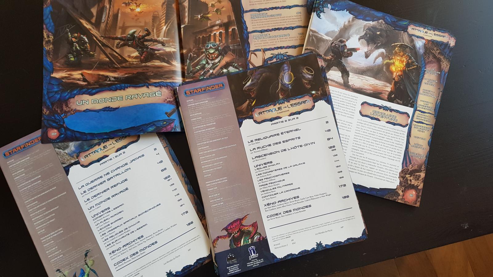 La nouvelle campagne (6 aventures en 2 volumes) pour Starfinder, actuellement disponible sous forme de Préco Bundle (PDF offert) pour ses volume 1 et volume 2, et accompagnée de Xéno-Archives 2 (et même d'un étui offert si vous optez pour le pack L'Attaque de l'essain + Xéno-Archives 2 !), est en phase finale de fabrication : nous venons d'en recevoir les feuillets et de validation.