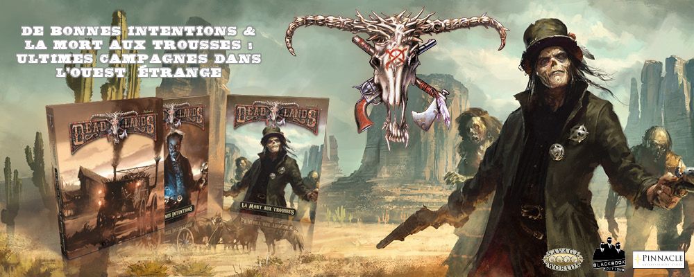 Les deux dernières campagnes pour Deadlands Reloaded, intitulées La Mort aux trousses et De bonnes intentions, en version classique et collector (La Mort aux trousses collector, Bonnes intentions collector), sont désormais disponibles.