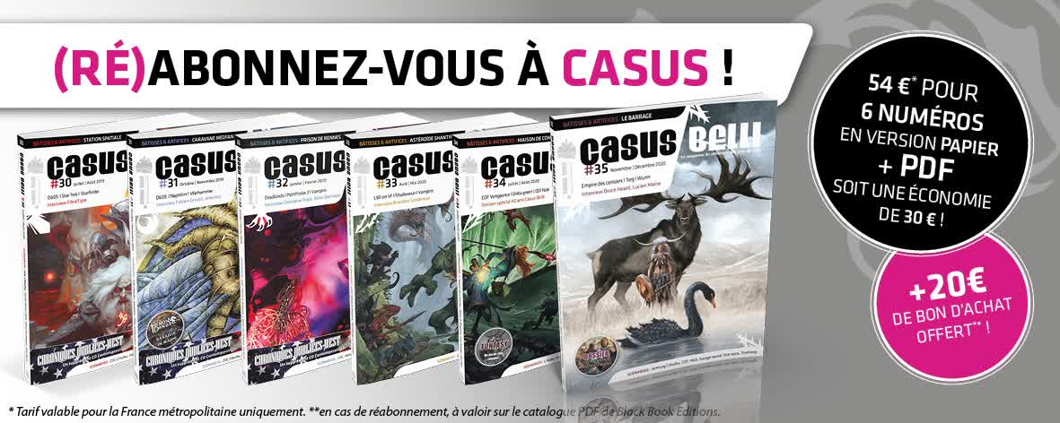 Le numéro #34 du magazine Casus Belli (spécial 40 ans, avec plus de pages que d'habitude !) est disponible en version papier et PDF et vous pouvez vous (ré)abonner pour le prochain cycle : #35 à #40 avant le vendredi 13 novembre.