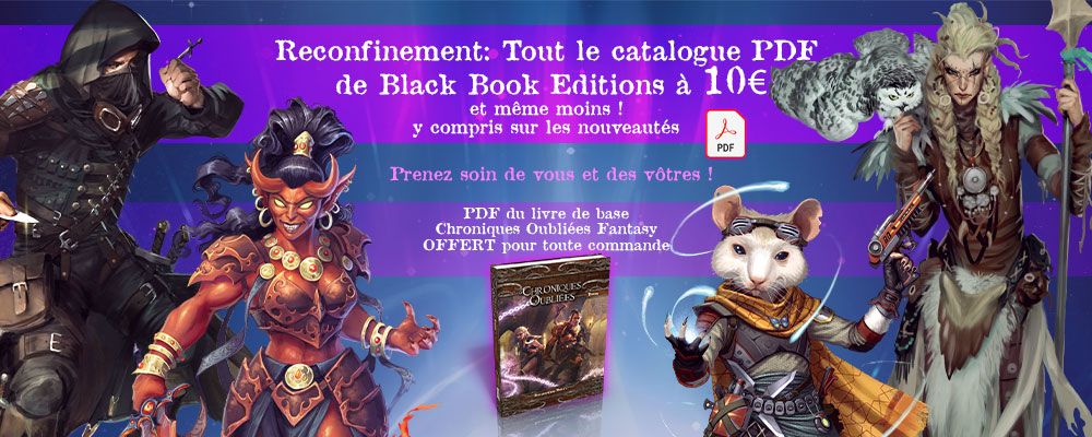 Promo PDF : Chroniques Oubliées Fantasy (livre de base) OFFERT en PDF et tout le catalogue Black Book Editions à 10 €