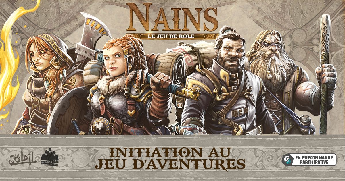 Black Book Editions et les Éditions Soleil sont fières et heureuses de vous annoncer que la précommande participative pour la boîte Nains, Initiation au jeu d'aventures va débuter mardi 16 mars à 19h sur la plateforme Game On.