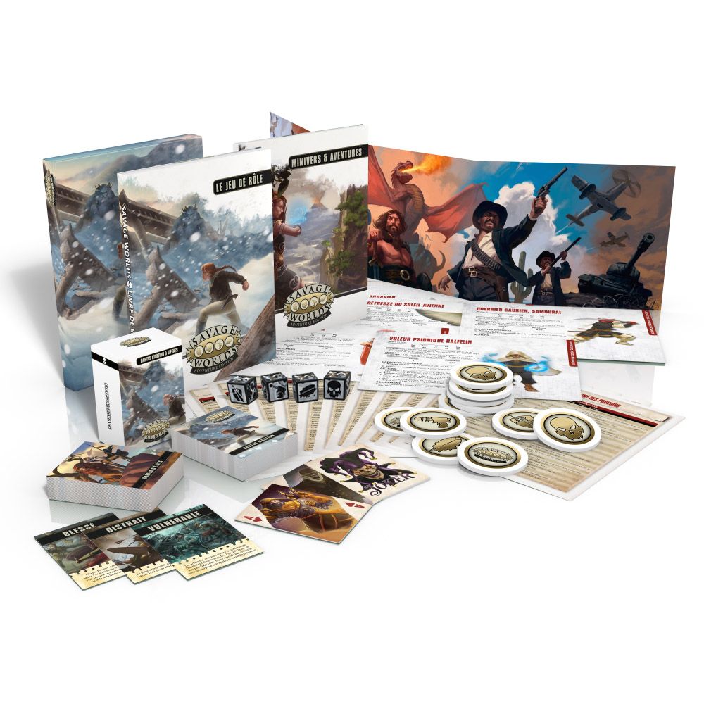 - L'ouvrage essentiel, bien évidemment : le livre de base Savage Worlds version rigide (une version souple est également disponible)