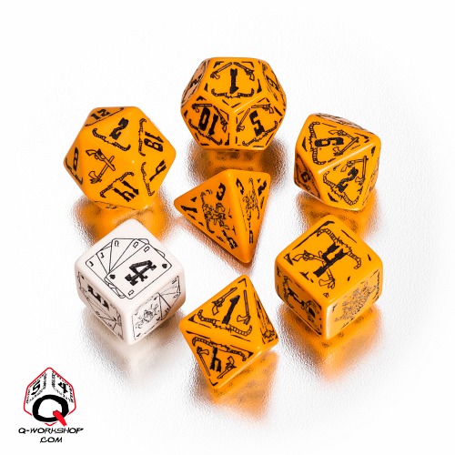 Alors que les éléments de le coffret collector de Deadlands sont toujours à l'assemblage chez le fabricant, nous vous annonçons que comme promis, nous avons décidé d'ajouter un élément supplémentaire au coffret pour vous remercier de votre patience. Il s'agit d'un très beau set de dés Deadlands officiel et conçu par Q-Workshop (image ci-contre).