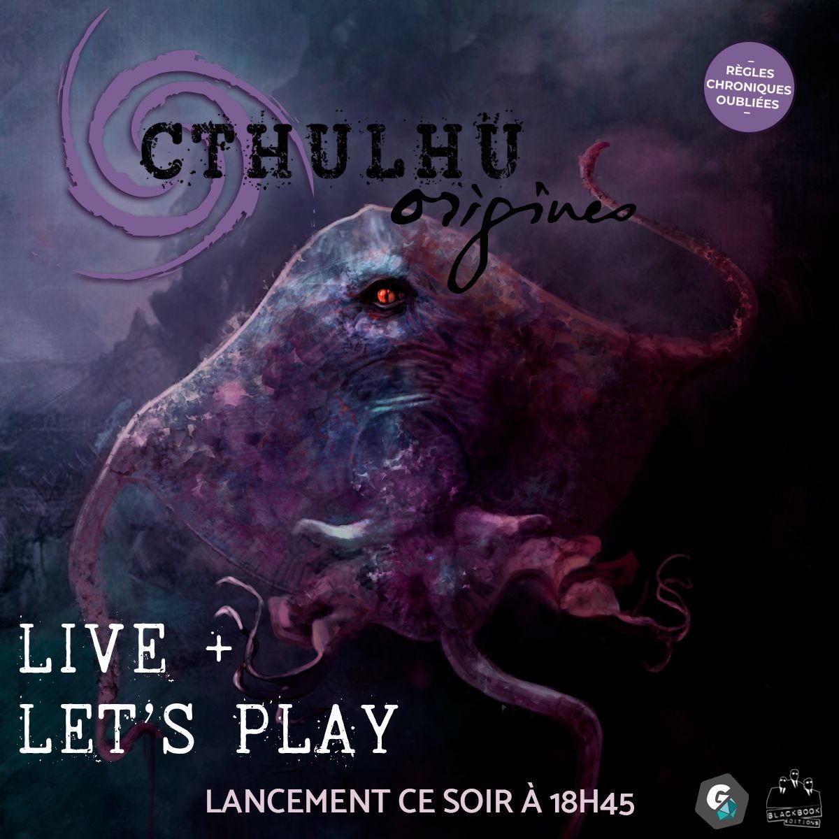 À 19H – Live de lancement : Tony, Marc, Alicia et Raphaël vous disent tout sur Cthulhu : Origines lors du Live de lancement de la précommande participative !