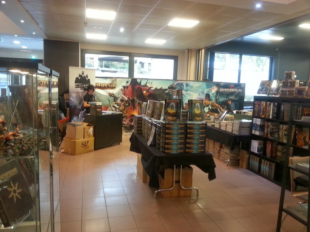 Nous avions un stand digne du Monde du jeu et avions pour l'occasion de nombreuses sorties (Trésors du MJ, Manuel des races Pathfinder, Edition anniversaire de l'Eveil des Seigneurs des runes, Dossiers de personnage Pathfinder, tous seront en vente dans les jours qui arrivent). Le public est venu en masse et a été plus chaleureux que jamais avec nous et nos auteurs préférés (le capitaine Renaud Maroy et le divin Philippe Tessier).