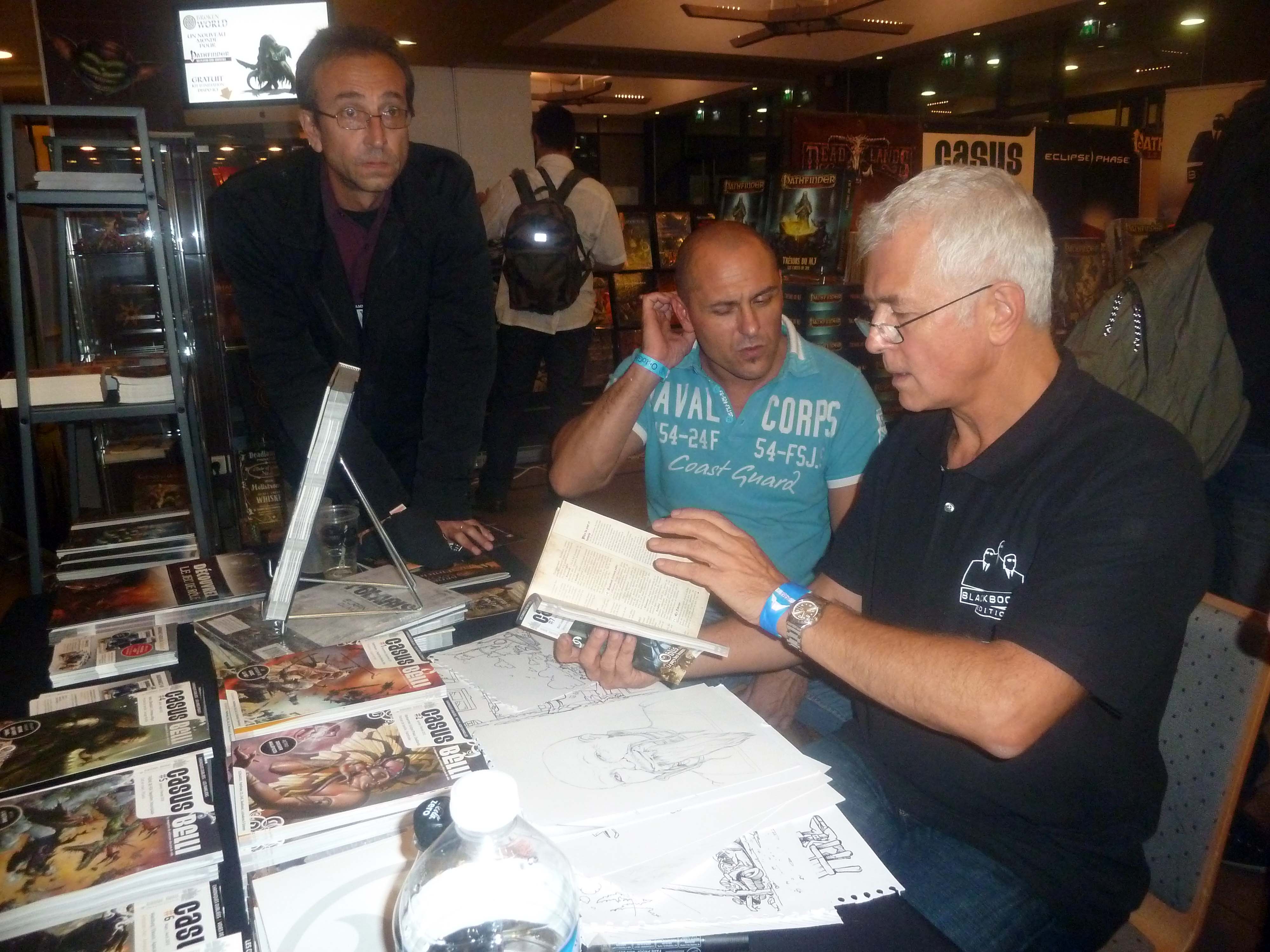 Du côté de Casus, Didier Guiserix a "crapou-isé" les fans heureux et souriants tout en tapant la discussion avec les membres de la rédac', venus en force avec leur sympathie habituelle (Fred, Pierre, Géraud, Julien, Jérôme, Bob, on en oublie, c'est sûr) ! Ce fut d'ailleurs l'occasion d'avancer sur la réorganisation du magazine (merci Raph !) alors que la bouclage du CB8 approche enfin !