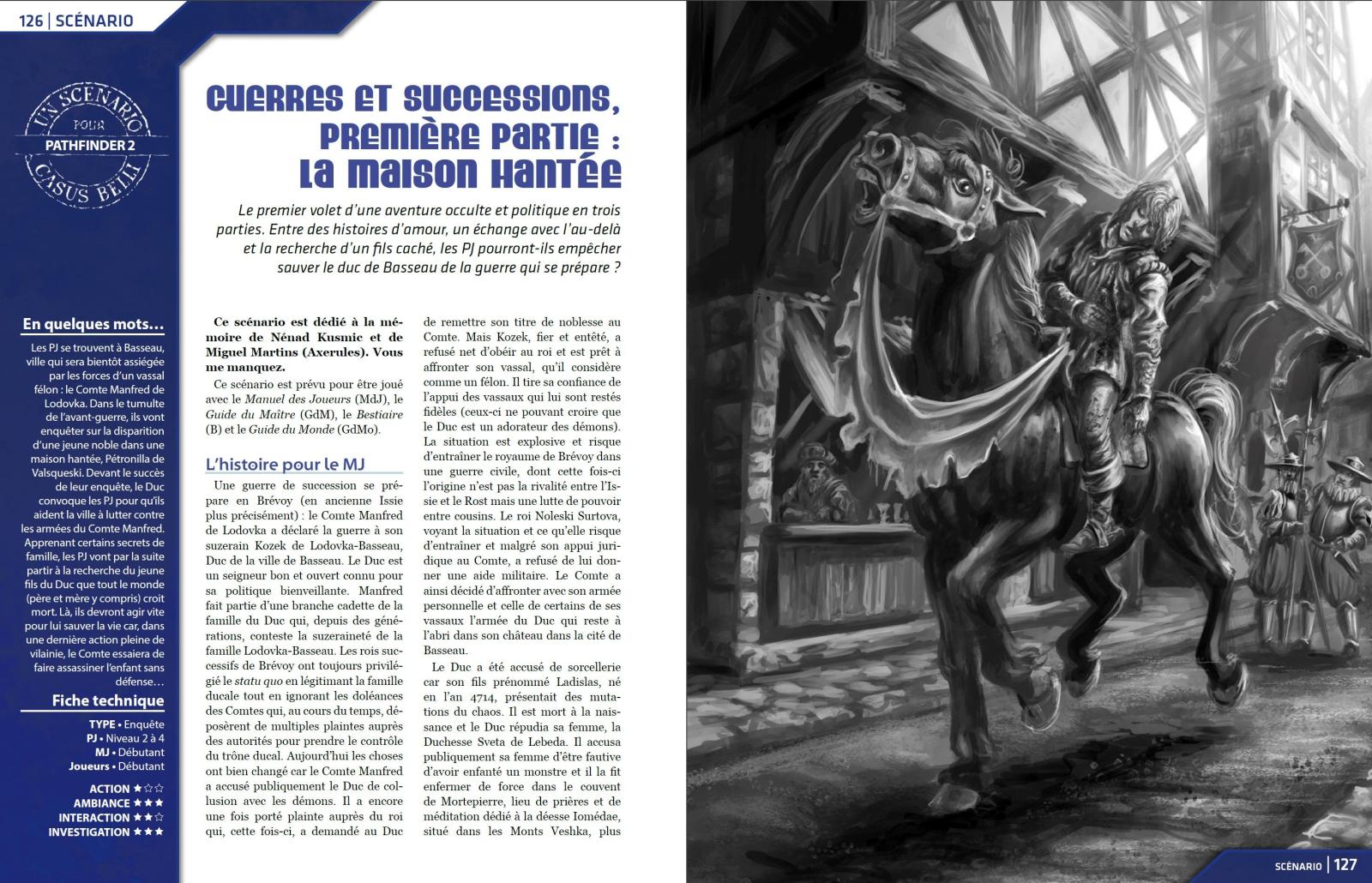 Mais aussi trois scénarios, dont un grand format pour Pathfinder 2 écrit par Sébastien Urbanek et illustré par Anthony Boursier, et Camille Bourgoin pour ce qui est des plans.
