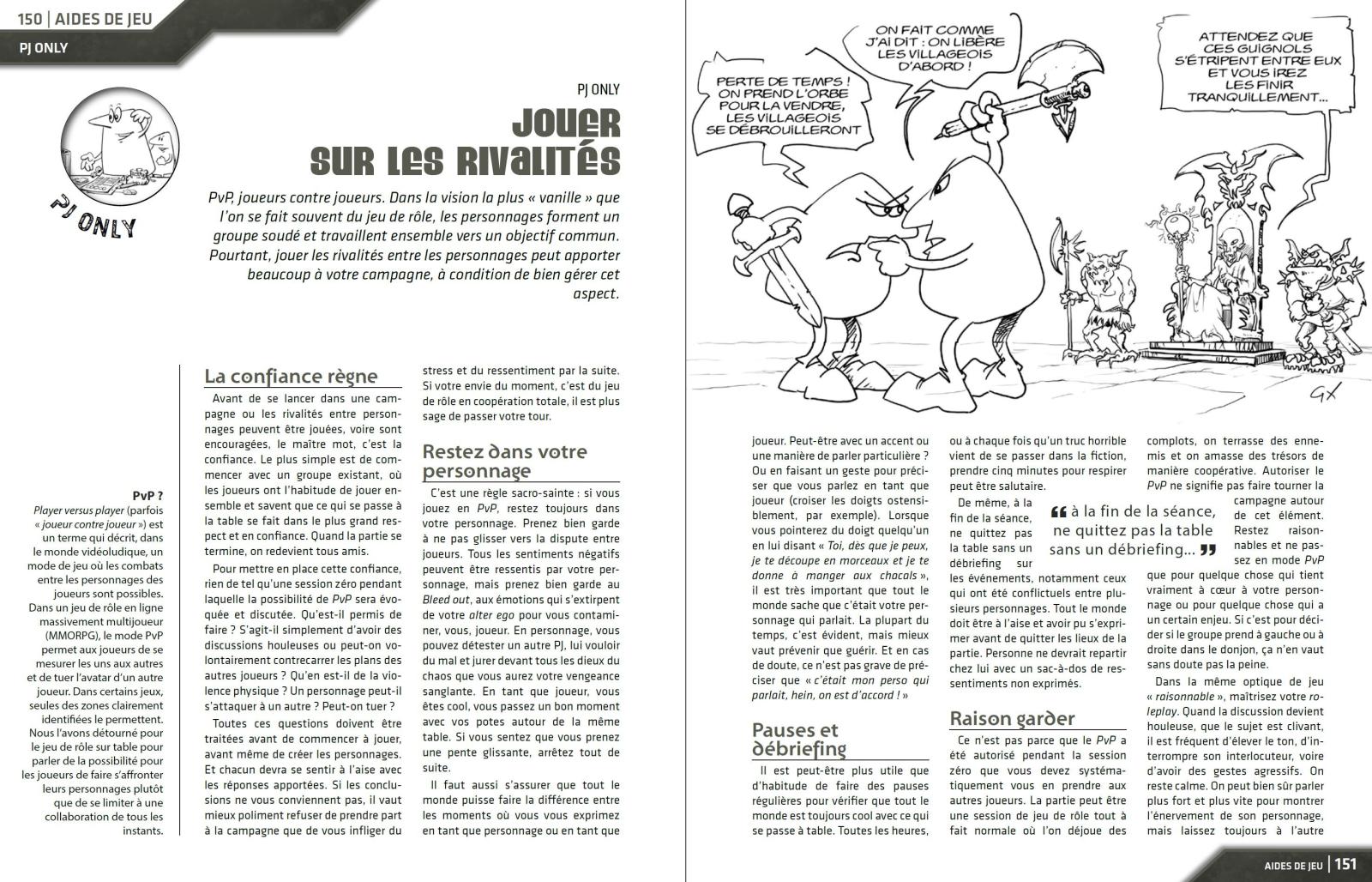 Casus, c’est aussi de nombreux articles de conseils et d’aides de jeu, tel « Jouer sur les rivalités », dans lequel Étienne Goos nous donne des pistes pour pouvoir intégrer dans nos parties des rivalités entre PJ sans risquer des prises de bec entre joueur ou plomber définitivement le déroulement de l’intrigue en cours.