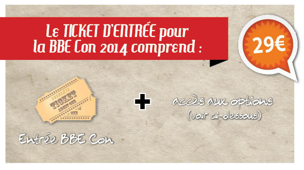 Ainsi donc, pour 29 € seulement, vous aurez votre billet d'entrée pour la journée au château ! Vous pourrez vous joindre à nous pour discuter, échanger, jouer aux tables des auteurs et des équipes de BBE et fêter comme il se doit une telle occasion. Si vous souhaitez, en plus de l'entrée, pouvoir profiter des repas de la "rolling cantine", du hors-série collector Casus ou de tout autre bonus, il peuvent être selectionnés indépendamment – en tant qu'options – lors de l'achat de votre billet.