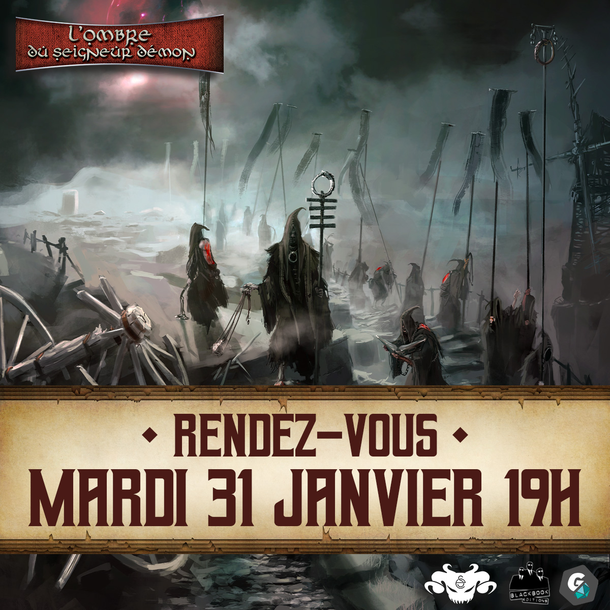 On vous donne rendez-vous le 31 janvier à 19h pour assister en direct à l'apocalypse ! En attendant l'arrivée du Dévoreur de Mondes, vous pouvez vous préinscrire sur la page Game On Tabletop de l'Ombre du Seigneur Démon pour être averti du lancement de la campagne ou consulter la page de la gamme pour profiter du livre de base à -50% !