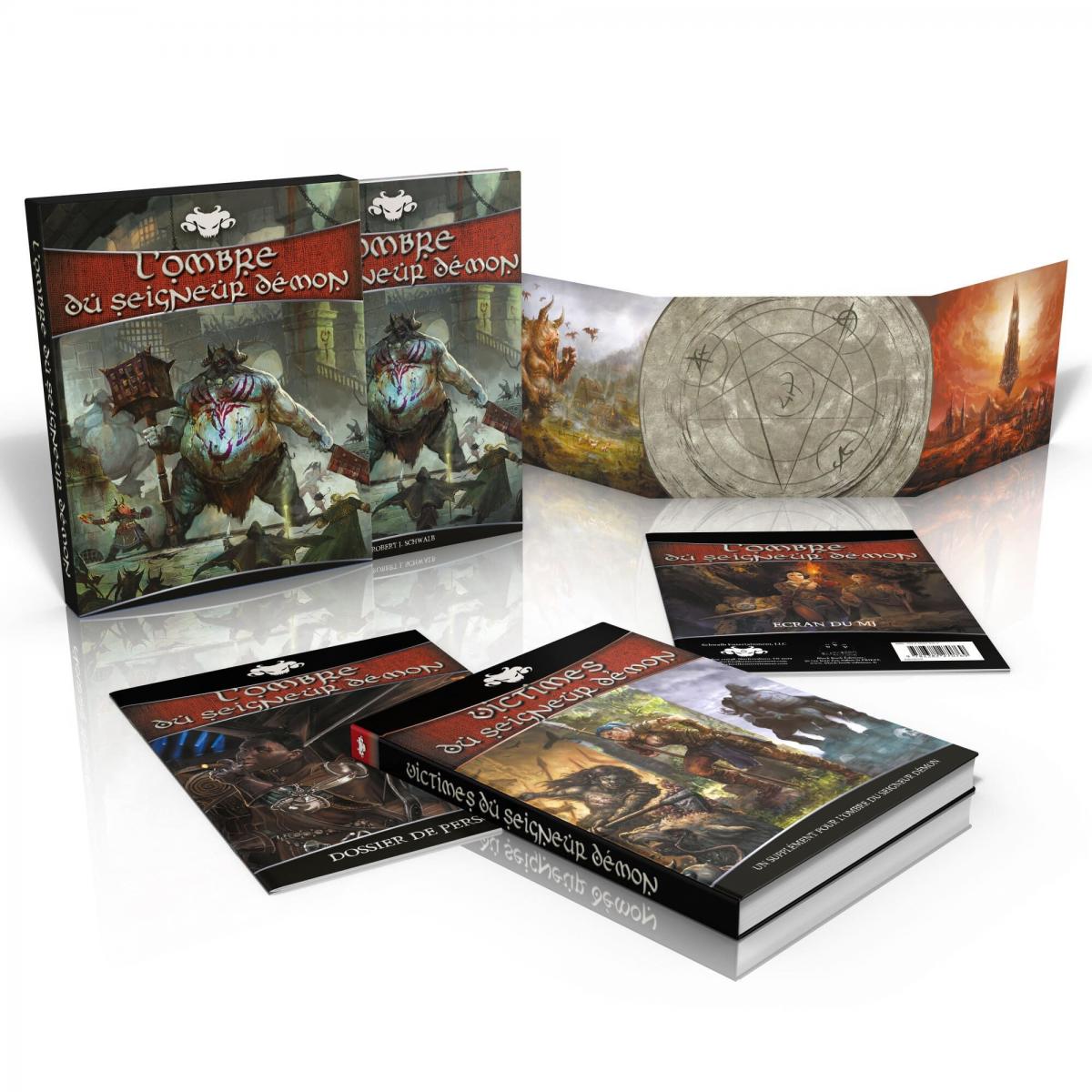 Editée par Black Book Editions sous licence Schwalb Entertainment, la gamme L'Ombre du Seigneur-Démon compte aujourd'hui, outre un livre de base et un écran du meneur de jeu, un premier supplément dédié aux ascendances jouables (races) supplémentaires ainsi qu'un dossier de personnage Ils sont complétés par un set de dés et des cartes géographiques.