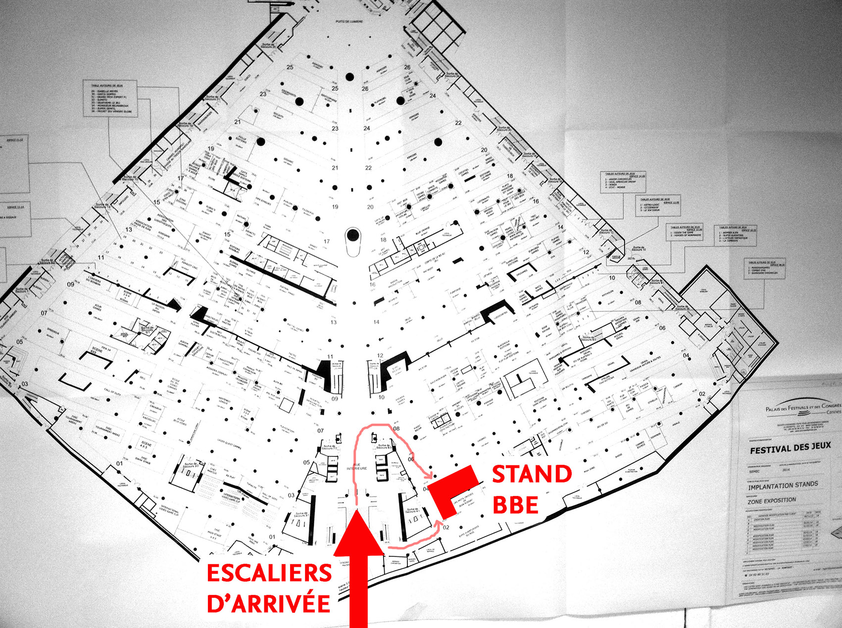 Voilà, demain à 10h, le Festival International des jeux de Cannes ouvrira ses portes ! Le stand est prêt et vous ne pourrez pas nous manquer (surtout si vous vous aidez du plan d'accès ci-dessous - nous sommes tout proche de l'entrée).