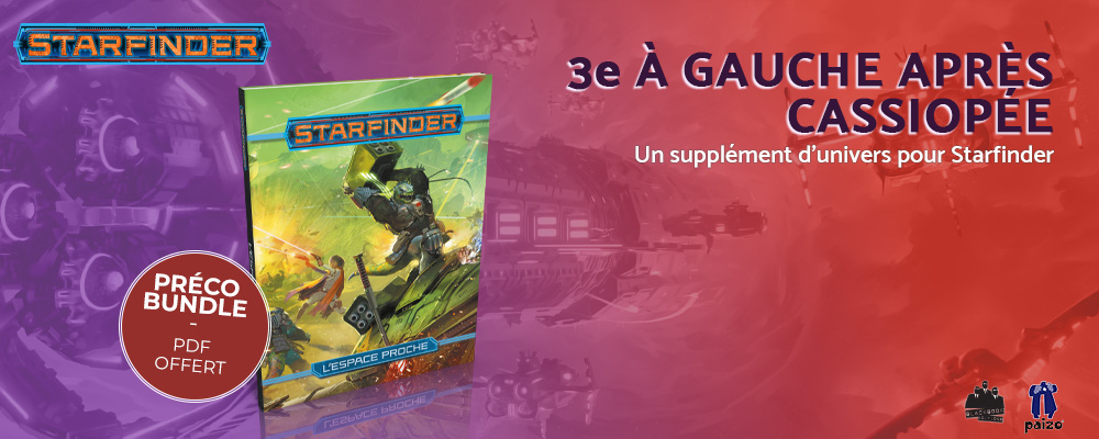 Alors que les expéditions du supplément Espace proche pour Starfinder sont en cours (PDF offert pendant une poignée d'heures encore !), coup de projo sur le livre de base de la gamme science-fantasy dans l'avenir de Pathfinder : Starfinder en baisse de prix à -50% (hors versions collector) !