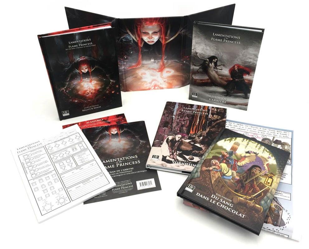 Lamentations of the Flame Princess (LotFP pour les intimes) : Jeu de rôle étrange et fantastique présente une facette sinistre et horrible du jeu de fantasy traditionnel. Ses règles old school sont inspirées des toutes premières versions du premier des jeux de rôle : un débutant appréciera leur simplicité, un vétéran leur côté coriace. Vos pires cauchemars vont devenir réalité.