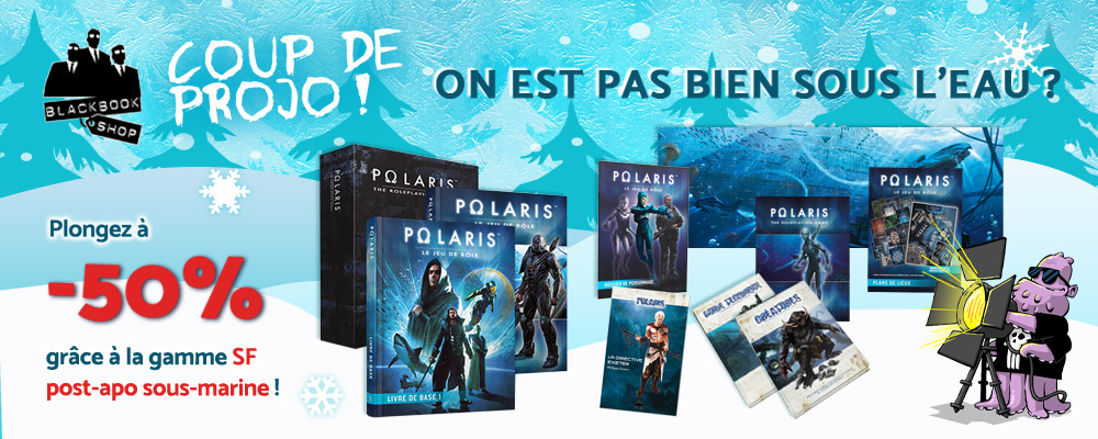 Si vous souhaitez découvrir le jeu de rôle Polaris, tournez-vous vers les deux magnifiques Livres de base qui contiennent tout le nécessaire pour jouer, que ce soit le background (l'historique général de l'univers), les règles de jeu, l'effet Polaris, l'équipement (des armures de combat aux navires sous-marins), un bestiaire et un scénario d'introduction.