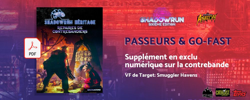 Dans la foulée de Jeux de pouvoirs, supplément consacré aux mégacorpos de l'univers de Shadowrun en 2080, mais aussi de Dossiers corporatistes 2054, autrement dit la VF de "Corporate Shadowfiles" qui va très bien avec, le collectif OPv2 et BBE sont heureux de vous proposer dès maintenant Repaires de contrebandiers, la VF du super supplément (initialement paru pour la 3e édition) Target: Smuggler Havens.
