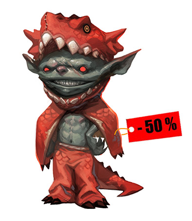 Les foules de Grandes-Guibolles sont dans les rues et prennent déjà d'assaut les grands magasins et autres boutiques en tout genre, se débattant au milieu des allées bondées pour quelques bouts de chiffons disgracieux (tout le monde sait bien que rien ne vaut un costume en peau de kobbold !). Mais grâce aux soldes du gobelin qui débutent aujourd'hui sur la boutique, vous allez pouvoir faire des économies sans sortir de chez vous !
