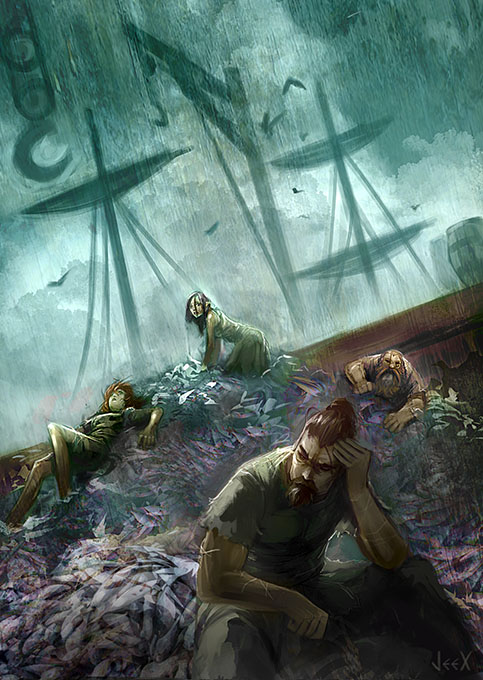 « Vous vous réveillez avec la plus horrible des gueule de bois, sur un tas de poisson puant. Les mouettes semblent se rire de vous, le soleil vous martèle le crâne aussi sûrement que le feraient mille marteaux d’airain. Et vous ne vous souvenez de rien. Pour être précis, vous avez oublié les trois derniers mois de votre vie. Pas un, pas quatre mais trois mois… étrange. »