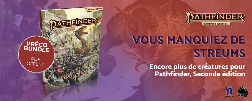 Nous sommes très heureux de vous annoncer le début imminent des envois du Bestiaire 3 pour Pathfinder, encore disponibles pour quelques jours en Préco Bundle (PDF offert mis à disposition immédiatement) !