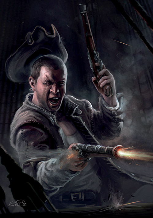 Alors que le travail d'illustration (voir un exemple ci-dessous) et les recherches pour revoir la maquette continuent, parlons aujourd'hui un peu du Hollandais volant ! Nous avons annoncé que cette campagne serait augmentée et compilée dans un volume publié à part des ouvrages de la gamme. Et Renaud vient justement de s'attaquer aux relectures des ajouts, que l'on doit à Marc Sautriot, et nous a d'ailleurs fait le retour que c'était vraiment à ses yeux un enrichissement de qualité !
