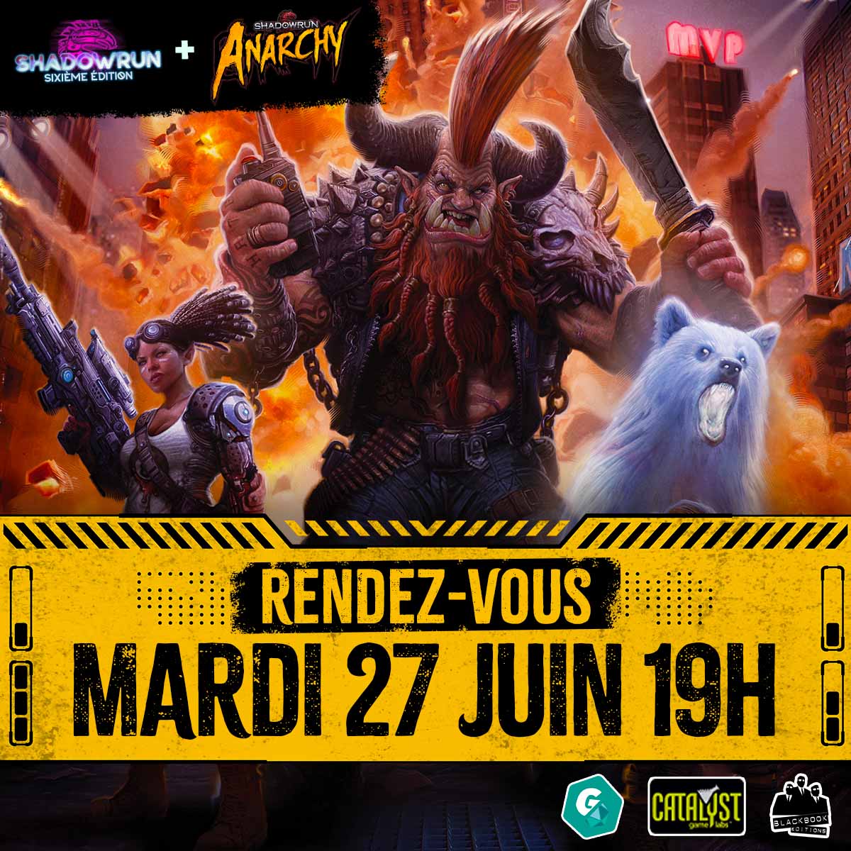 La gamme Shadowrun est de retour chez Black Book Éditions ! Une nouvelle précommande participative se prépare, et elle mettra tout le monde d'accord : joueurs de Shadowrun 6 et joueurs d'Anarchy !