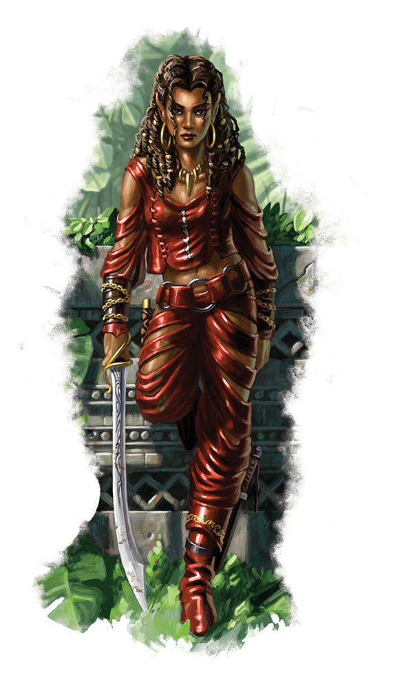 Située en bordure de la jungle de Médiogalti, le port de la Racaille comme la surnomment les gens civilisés est une ville qui grouille de pirates, de coupe-jarrets et surtout d'assassins. Évidemment, tous les habitants ne sont pas des tueurs impitoyables, mais le culte des Mantes s’est si bien intégré à la ville qu’il est impossible de savoir si le vieux mendiant bourru assis au coin de la rue ne cache pas un sabre dentelé sous son manteau crasseux ou si la plantureuse serveuse de la taverne n’a pas autant de chances de glisser du poison dans votre verre que de vous lancer un sourire charmeur.